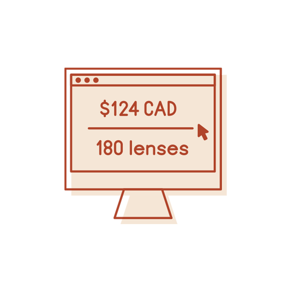 Your $124 subscription, delivered every three months, brings your lens cost to about a dollar a day. And just $4 for shipping and handling.